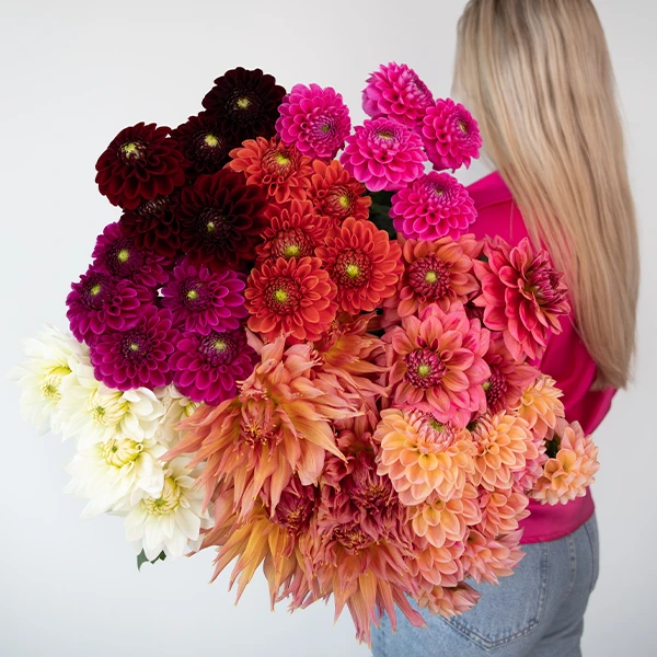 And there you have it! You now have all the insider tips to treat your Dahlias cut flowers like the amazing flowers they are. Just give them a nice cut with sharp scissors, let them soak up some fresh water with flower food, and allow them to relax in a cool spot. Your Dahlias will reward you with bright colors and a touch of flower magic. So go ahead, pick your fave Dahlias, place your order, follow the steps we told you and create your art. Because like we always say, we supply the ingredients and you make the art; also known as “We Deliver, You Create.”